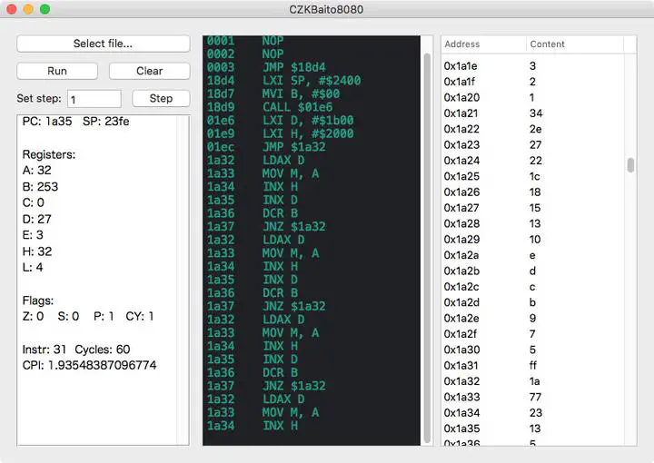 If you feel like checking it out right now, I recommend using the original タイトー Space Invaders binary as an input file for best results. The reason: I’m iterating through the instructions of that particular file and implementing them one by one.